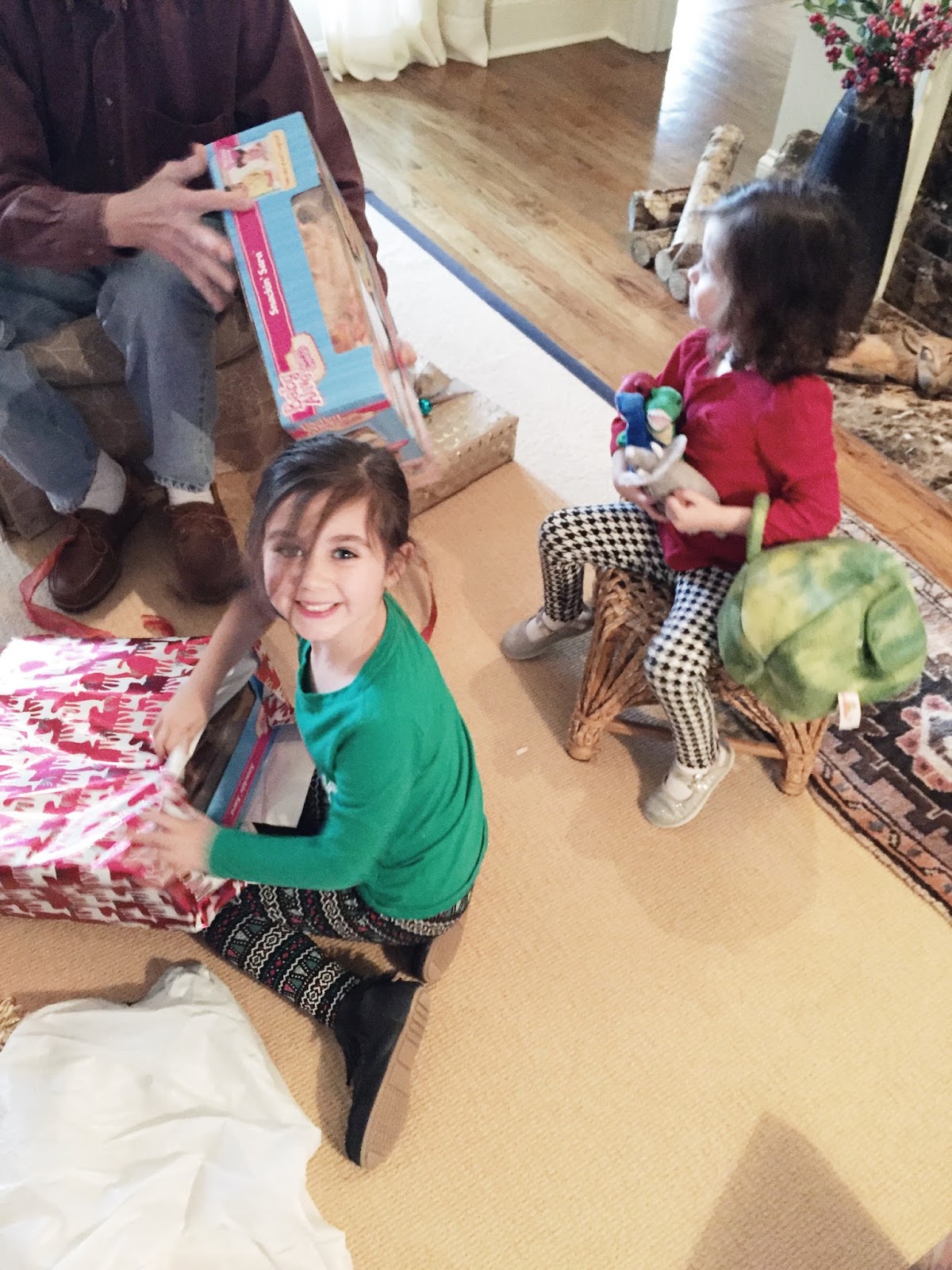 The playroom is where the girls spend most of their time, so we had to decorate it a bit too! Next year I may try to do a little more in there. I made the Merry Christmas banner with some watercolor paper, watercolor paint, cardboard letters, and twine. It hangs above their play kitchen, which is still one of the biggest Santa hits ever!